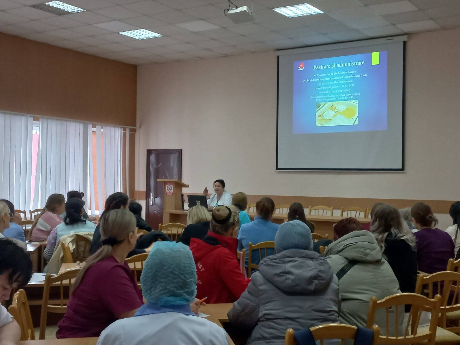 Formator intern a fost doamna Elena Matveenco, asistentă medicală superioară în cadrul cabinetului de transfuzie a sângelui. În cadrul sesiunii au fost abordate subiecte esențiale precum indicațiile și contraindicațiile transfuziei, pregătirea pacientului și verificarea compatibilității, monitorizarea pacientului în timpul transfuziei, identificarea și gestionarea reacțiilor adverse posttransfuzionale, precum și respectarea protocoalelor și asigurarea trasabilității produselor sanguine.