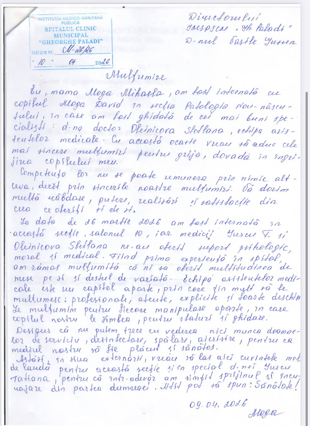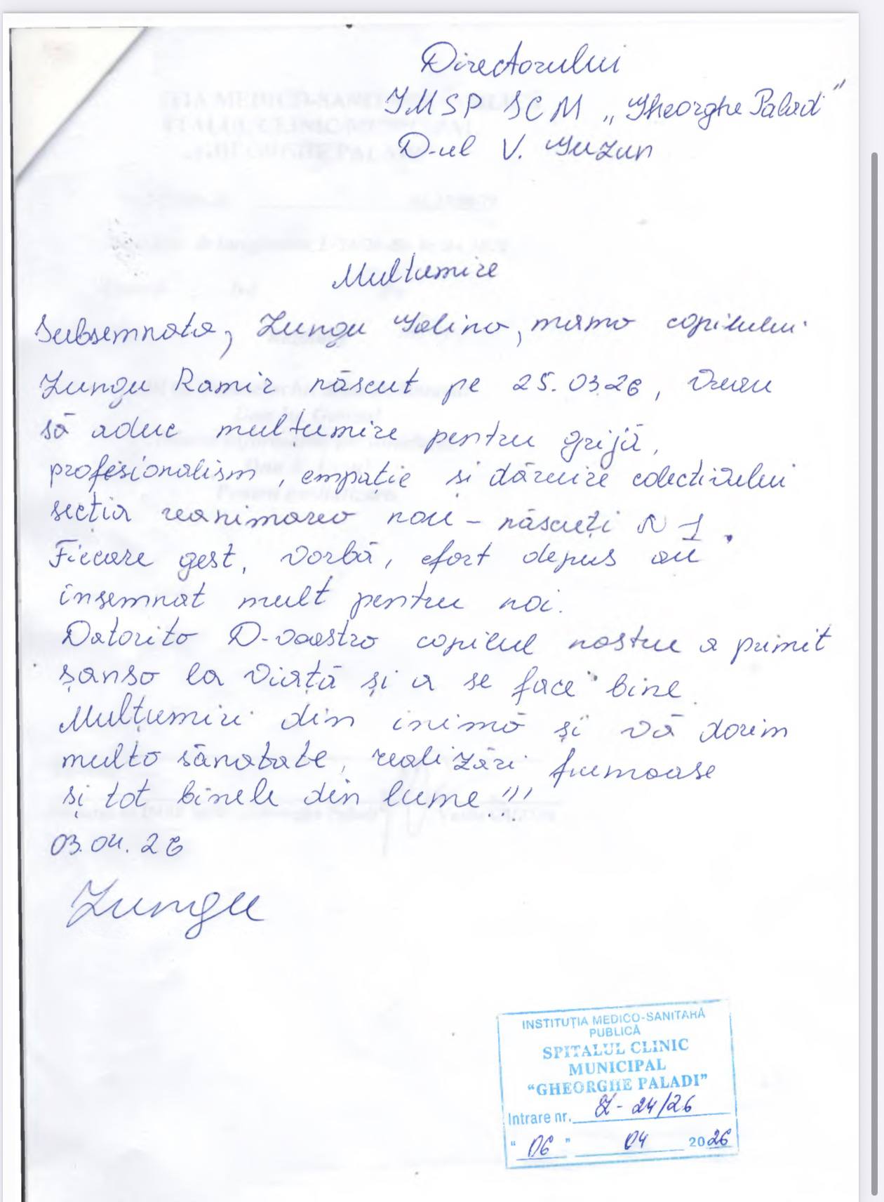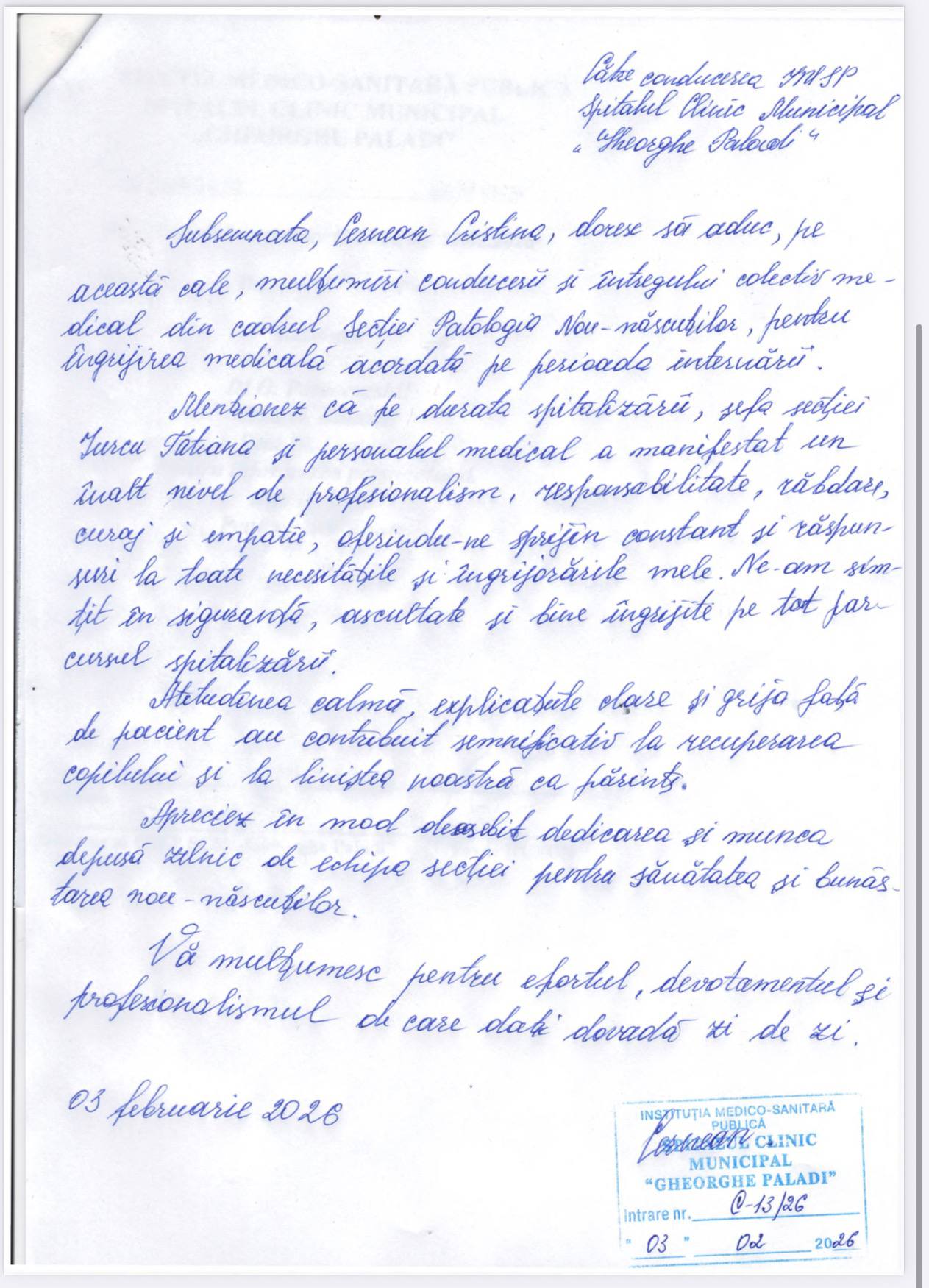 IMSP SCM „Gheorghe Paladi” aduce la cunoștința publicului mai multe mesaje de mulțumire parvenite din partea părinților ai căror copii au beneficiat de îngrijiri medicale în cadrul Secției Patologia Nou-Născuților. Părinții își exprimă profunda recunoștință pentru profesionalismul, grija și empatia de care a dat dovadă întreg colectivul medical în perioade dificile, marcate de emoții și incertitudini. Mesajele evidențiază implicarea medicilor, a asistenților medicali și a personalului auxiliar, care au oferit nu doar tratament de calitate, ci și suport moral și psihologic necesar familiilor.