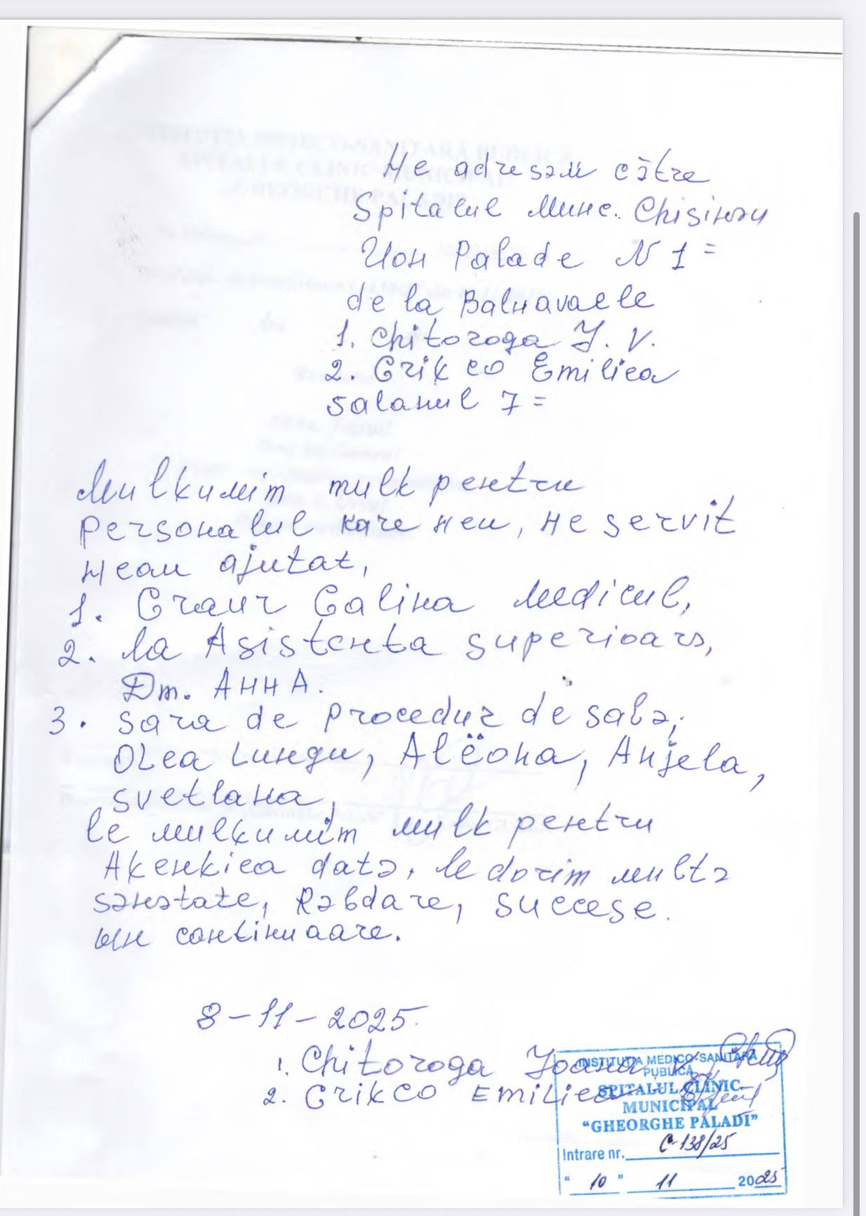 IMSP SCM „Gheorghe Paladi” își exprimă aprecierea pentru aceste mesaje de recunoștință, care confirmă încă o dată importanța muncii depuse de personalul medical și dedicarea acestuia față de pacienți și aduce sincere mulțumiri întreg personalului medical pentru efortul lor și munca imensă.